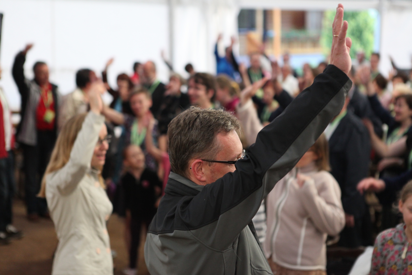 To przepełnione modlitwą uwielbienia spotkanie, prowadzone jest w radosnej atmosferze.